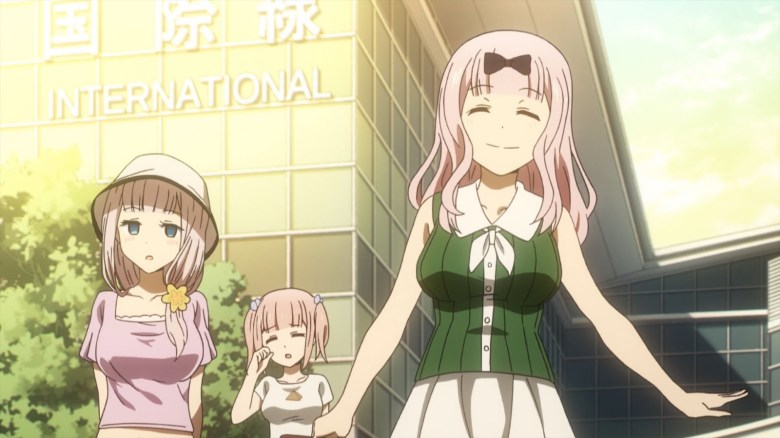No obstante, luego de esperar bastante. Kaguya se retira y Shirogane apenas llega exhausto en su bicicleta. Pero, ya es tarde. Por lo que desean que la vacaciones de verano terminan pronto. Con un cambio de escena, se muestra uan serie de retrocesos que en su mayoría han sido malos recuerdos familiares para Kaguya. Aunque, algunos buenos recuerdos junto a su sirvienta y amiga, Hayasaka. En especial entre los peores, debido a que el padre de Kaguya ha sido y es el peor padre que justamente ella pueda tener. Dado que en todo momento la trata con extrema indiferencia.