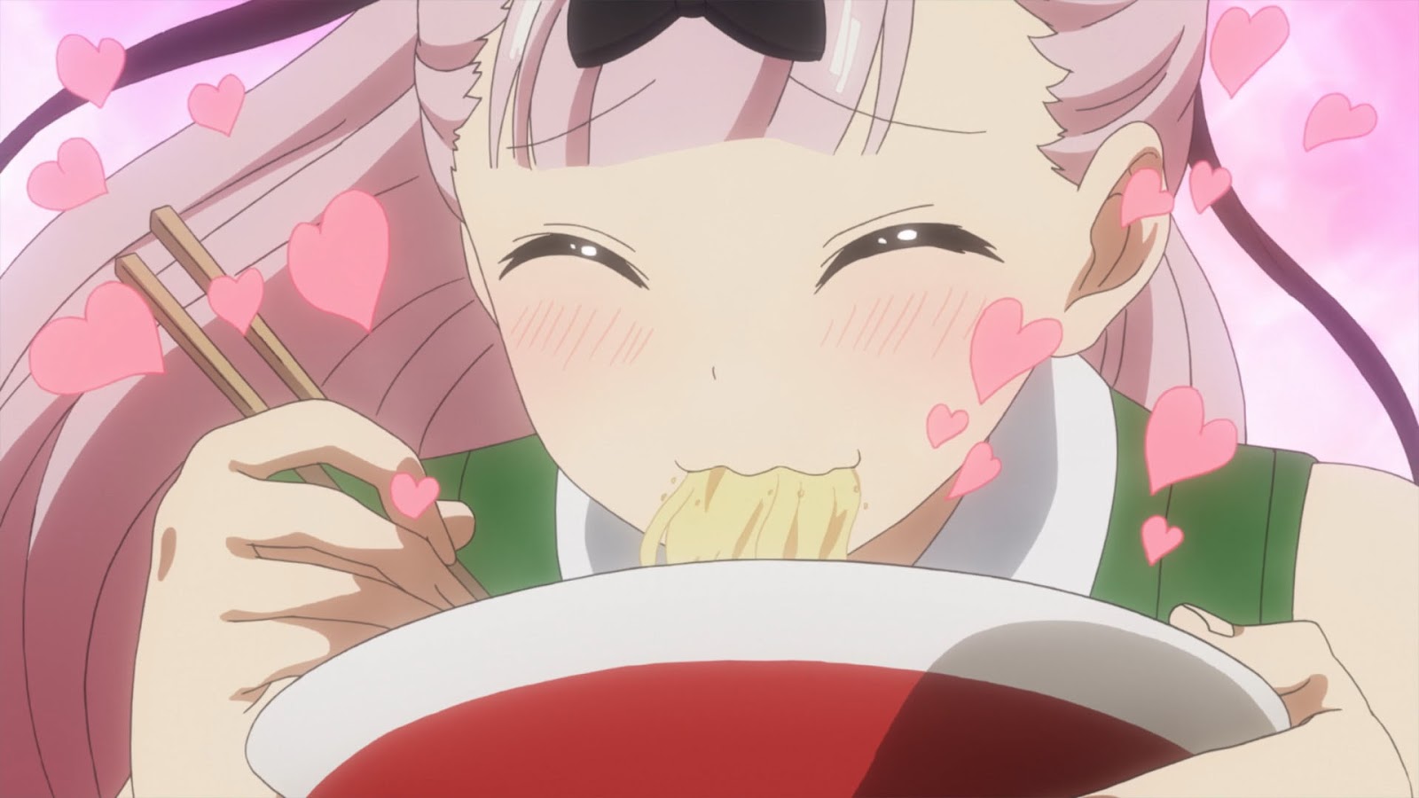 Un episodio bastante divertido y cómico. En especial las escena bizarras de las reacciones de un sujeto promedio ante las acciones de Chika por comer un simple tazón de ramen. Lo encontré bastante complicado para comer algo tan sencillo. La verdad que cada momento fue un desmadre de risas. A parte de los nuevis o descubrimientos en la vida de Kuguya por adentrarse en la red social de Twitter. Con el objetivo de conocer más al presidente estudiantil, Shirogane. Tal como en cada momento que Kaguya interrumpe el momento de tranquilidad de Hayasaka, por tan solo dar un pequeño paso para acercarse mas a Shirogane.