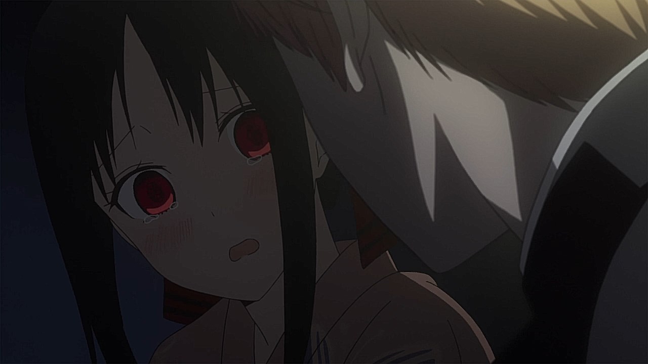 Miyuki en búsqueda de Kaguya, se percata del buen plan de Hayasaka y corre de vuelta al festival en su bicicleta, mientras Kaguya van en taxi. Por desdicha, Kaguya no puede avanzar más en taxi. Dado que una congestión en el tráfico no permite avanzara en auto. Por lo que se desmonta y corre, pero al estar tan cerca de llegar al festival, este ha culminado y todo parece perdido para la chica. Entre un callejón oscuro, Kaguya llora. No obstante, Shirogane hace su entrada y la toma del brazo mientras le ofrece algunas palabras cortas y concisas de motivación.