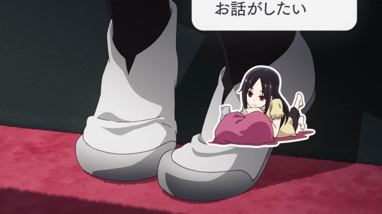 De repente, el plan de Miyuki es provocar que Kaguya pida su número. Sin embargo, ella ya conoce la intenciones del chico y su plan no se da bien. No obstante, el presidente se las ingenia para capturar la atención de Kaguya.
