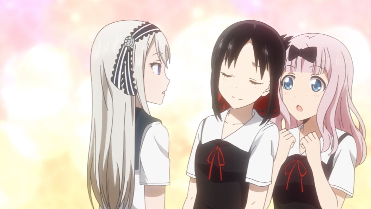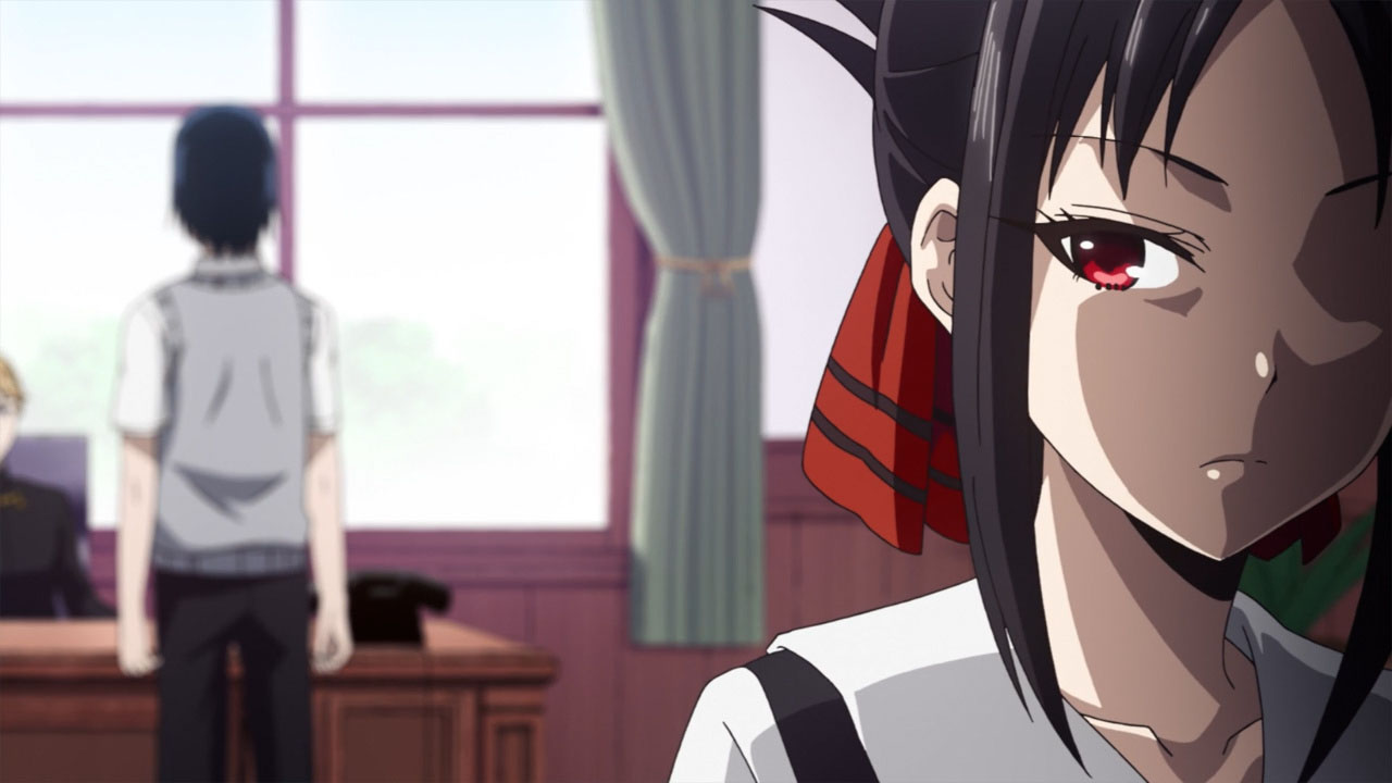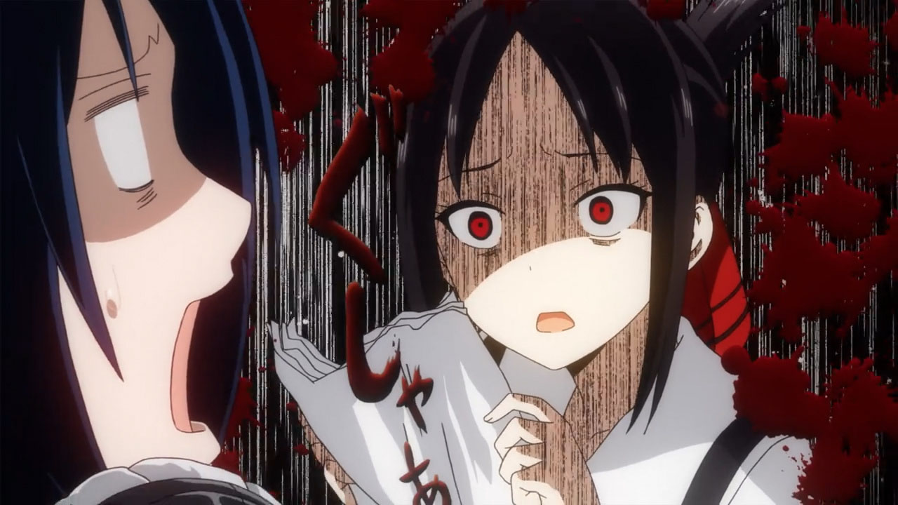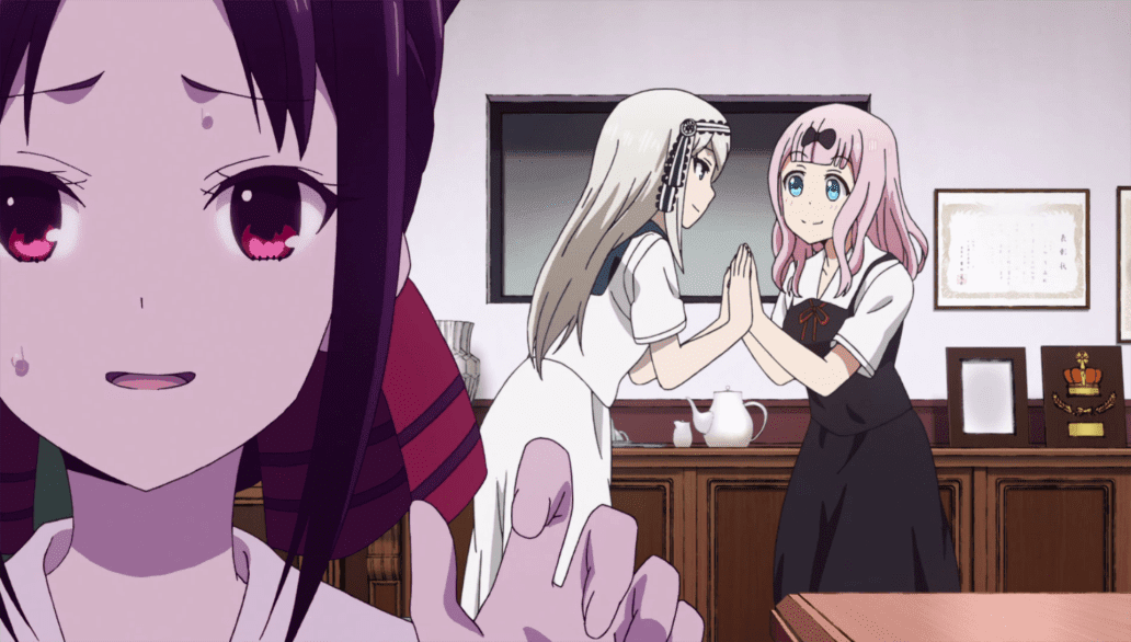 Apenas comenzando la trama de este episodio. Kaguya reacciona de manera bastante divertida y graciosa a la vez ante la aparición de la hermana menor del presidente estudiantil, Shirogane. Con la sorpresa de Kaguya al apenas percatarse de que Kei y Miyuki son hermanos. Sus acciones. Así, como reacciones fueron de los mas chistoso. Dado que el acercamiento que Kaguya desea entre Shirogane y ella, hace que cometa locuras por acercarse como medio a su hermana. Tal como se puede apreciar uno de los momentos más divertidos en el que Kaguya se acerca carinosamente a Chika…