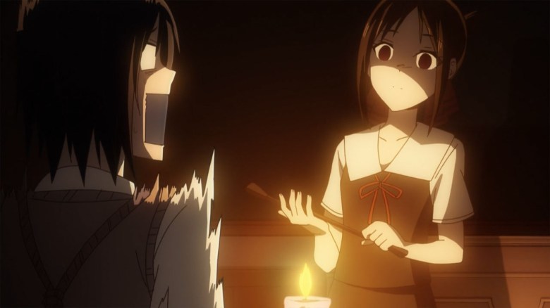 La cual no comprende el escenario bélico entre sus mentes. Puesto que son los dos mejores estudiantes de toda la Academia. Por lo que naturalmente se abren escenas en el que, quien domine mejor el área, triunfa. Mientras, que la jocosa forma de despreocupación del tesorero por los exámenes, hace que despierte la curiosidad y la preocupación en Kaguya de una forma bastante graciosa y terrorífica a la vez ante Ishigami. Dado que un sinfín de acciones e intentos de escapar de los estudios de parte del secretario han sido inútil ante el poder e inteligencia. Así, como astucia de la vicepresidenta Kaguya.