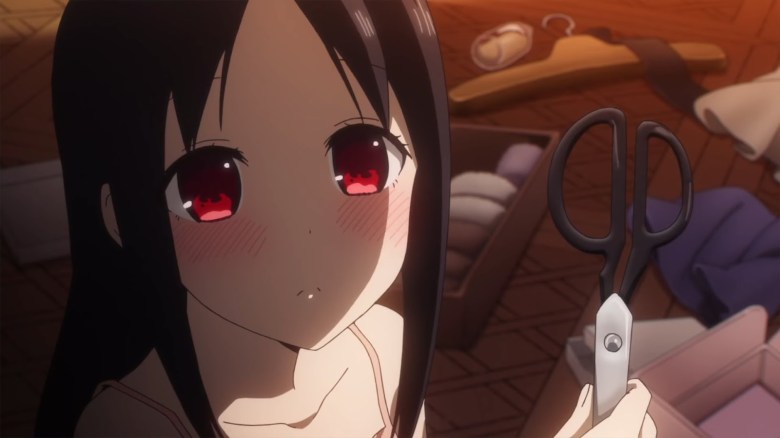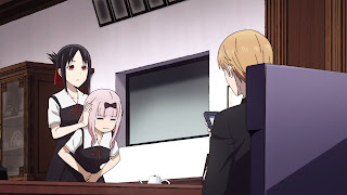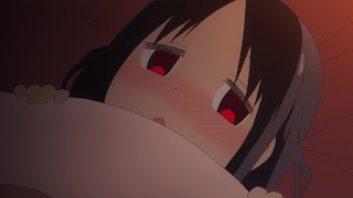 Kaguya regresa a la normalidad y Hayasaka intenta buscar mancha blancas en la cama, por si algo ocurrió entre Kaguya y