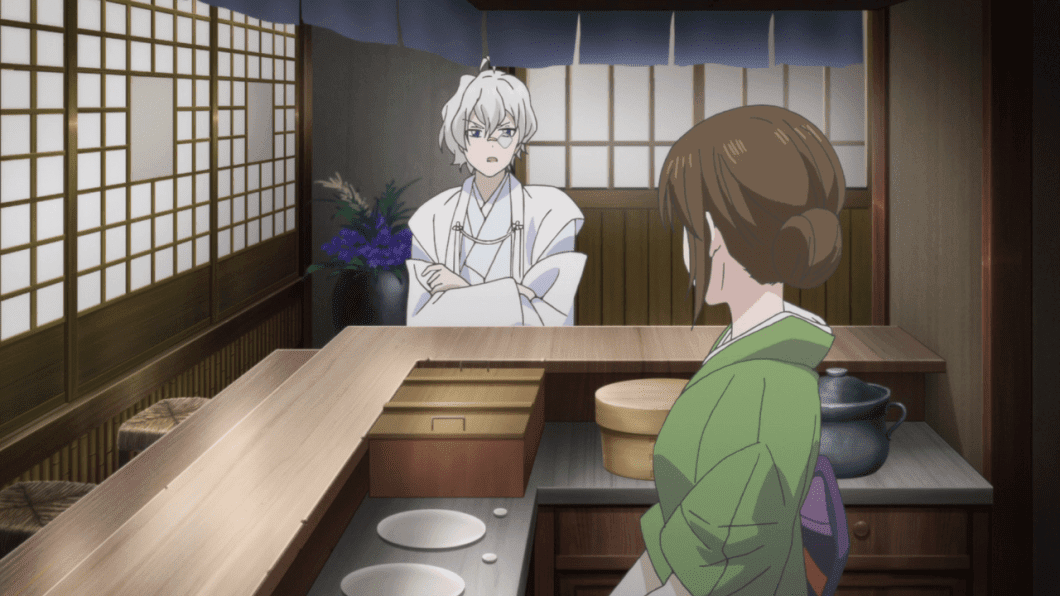 A continuación, luego de que Shizuna y Tukihiko se marcharan del restaurante, Aoi continua sus rutinas de cocina cuando de pronto es visitada por el Tengu Hatori quien decide saber de ella por lo que decide probar del curry que prepara Aoi y al terminar le parece exquisito, Shiro y él eran mejores amigos, esto pone a dudar a Aoi sobre Hatori, posiblemente porque Shiro solía ser bastante travieso como pervertido. De pronto luego de todo ello Akatsuki aparece regañando a Aoi por dejar entrar a Hatori el cual describe como mujeriego, sin embargo Aoi le hace saber de qué solo lo recibió como cliente, Hatori de inmediato regresa a su aposento con Tukihiko el cual pregunta donde estuvo, revelando Hanzo a él sobre las cualidades positivas y negativas que encontró en Aoi.