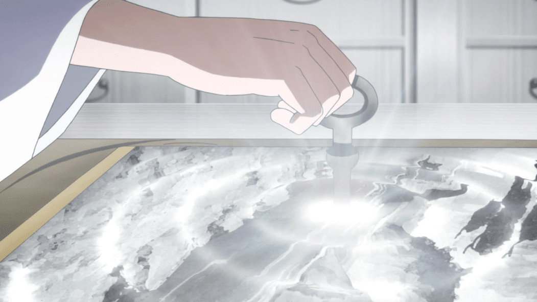 De pronto Byakuya aparece y su presencia atemoriza a Raiju, Byakuya hace retroceder a Raiju mediante sus palabras y ataque reflector luego de que Raiju lanzara un ataque de rayo, después Aoi se reúne con Byakuya, Ranmaru y el rey Ninuoin y su esposa mientras conversan de Raiju y la ceremonia entre ellas los artículos necesarios para dicha actividad. Ninuoin le muestra una pintura plasmada en un pergamino del que obtendrán una de a reliquias para la ceremonia, pues dentro de la pintura se encuentra las gema de Hourai atreves de otra dimensión.