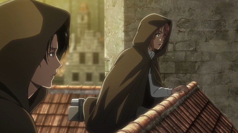 Sin embargo él no piensa hacerlo al ya haber dormido un dia y Connie esta preocupado en querer vengarse contra el Titan Bestia mientras el chico tiembla de miedo, Eren lo observa cuando Historia les hace saber a Eren y los demás que la menos tiene un objetivo por lo que están determinados peor ella no y con la partida anteriormente de Ymir, Historia esta desorientada y que hasta el monto ha sido la persona más prenda para ella, Eren le hace saber de que ella esta mejor que antes, pies en mucha ocasiones sonreía forzosamente y ahora es mas seria lo cual lo hace ver mas natural, luego Eren recibe notificaciones de que Hange llego, la cual les explica al escuadrón 104 y Levy sobre el asesinato del pastor Nick.