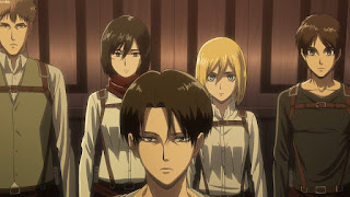 Luego de que Levi explicase a Eren de todo lo acontecido se enlistan en perseguir al titán, los hombres de Erwin deciden analizar el rumbo del titan y se encuentran con Levi para entregarse Erwin de que Rod es el titan, mientras avanzan Hange, Historia y los demás conversan de los percances del ataque.