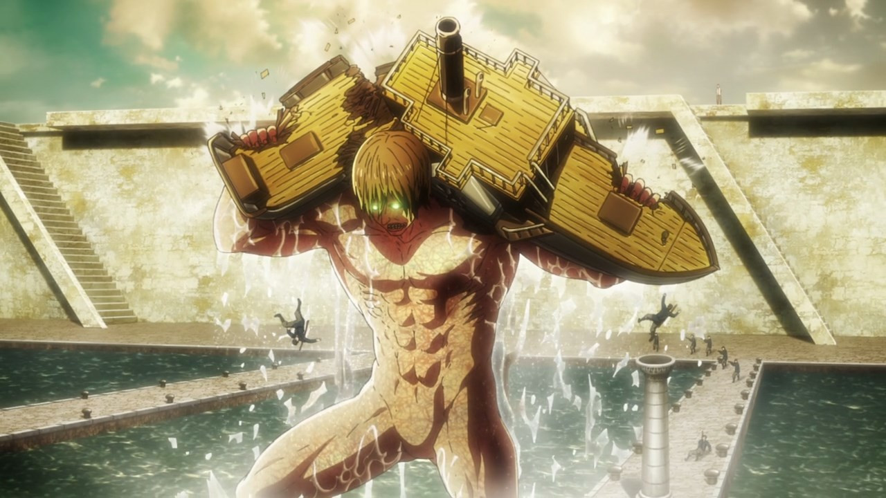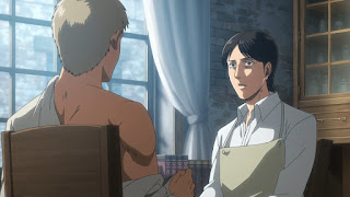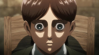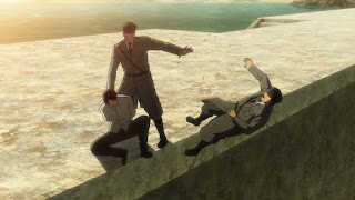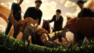 Los cuales son transformados en Titanes Puros sin voluntad propia. A causa del suero de Titán. Grisha se percata de que uno de los oficiales presentes es el asesino de su hermanita. De repente, traen a una mujer a la condena. Evidentemente, Dina, Grisha trata de ayudarla, pero el sargento Gross le inyecta el suero de Titán a Dina, la cual promete buscar a Grisha, no importa que suceda. Así, Dina es transformada en otra bestia devora hombres. De vuelta al presente. Eren Jaeger despierta de una larga pesadilla a través de los recuerdos más desastrosos de la vida de su padre.
