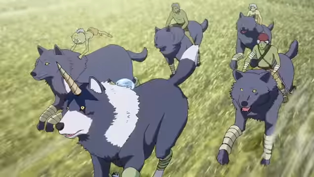 El líder de la manada ataca pues termina en el peor escenario atrapado por la técnicas infalibles de Rirumu y en un intento de atacar es decapitado por el viento cortante del Slime, Rirumu intenta intimidar a los lobos de que se marchen peor no funciona cuando el Slime adquiere las habilidades de los lobo muerto y con ello ejerce un temible aullido para espantarlos, sin embargo, los lobos avanzan y se inclinan ante Rirumu, mas adelante los lobos y duendes se reúnen como uno, pues Rirumu le otorga un nombre a cada duende, muy entusiasmados, el Slime siente cierta inquietud con ello.