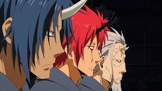 Con la derrota absoluta de Orc Lord, Rirumu y todas las especies monstruos presentes forman una reunión. Del que la Dríade, Treyni sede el mando en el Slime. En tal caso, que Rirumu están nerviosos, pues no está acostumbrado a tomar las riendas. Sin embargo, opta por iniciar y decide no sentenciar a los orcos por sus crímenes. Tales decisiones inquietan a los mismos. Así, como al rey Lizardman. No obstante, Rirumu hace saber que ha sido su promesa con Geld, anterior rey de los orcos. Así, como Benimaru hace entender que como descendiente de los ogro, su pasado al igual que sus compañeros ha sido fatal.