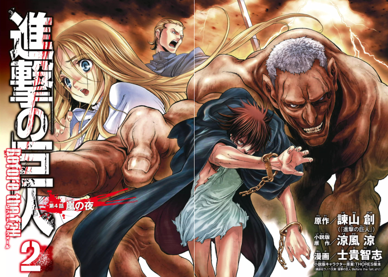 El manga conceptualiza la novela del propio nombre trazado por Suzukaze y delineados por personajes de parte de THORES Shibamoto, por lo que son Spin Off del popular manga Shingeki no Kyojin de parte de Hajime Isayama. El siguiente 9 de agosto se lanzará en venta su tomo resumido número 15.