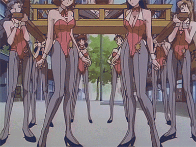 Chicas de anime en trajes de conejita, subcultura pop en la animacion nippona que deriva del Playboy proveniente de Japon e Iglaterra. En la manera que ha de capturar nuestro interes, nos atrae y son indispensables en muchos animes de comedia, romance y Ecchi.