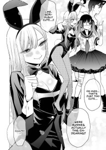 Yumiko practicó un servicio lascivo como esposa mientras se disfrazaba de una conejita playboy. Usando una almohada que abrazaba con forma de zanahoria como su objeto de entrenamiento. Su práctica se detuvo después de que Amane la descubrió y Yumiko gritó tan fuerte debido a la verguenza.