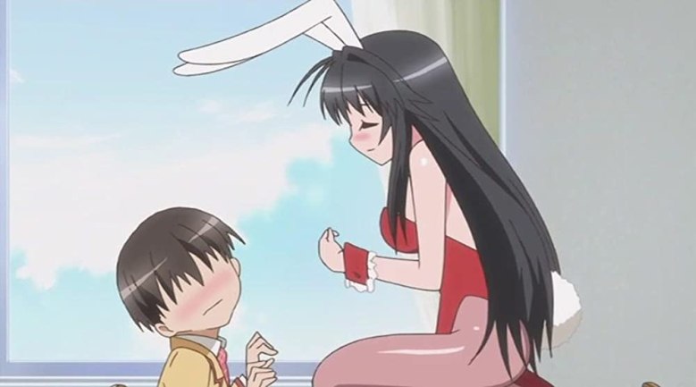 Honestamente, que para el episodio 3, Hibari no tiene nada de qué avergonzarse, ella hace una conejita muy linda. Estoy seguro de que ella es consciente de su encanto hechizante al mostrar tanta piel…