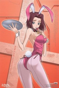 Al comienzo de Code Geass R2, la chica de accion Kallen se ve obligada a trabajar en un casino mientras usa un traje de Playboy Bunny en una situación donde solo una mujer podria ejecutar. No está muy contenta con eso que digamos, y algunos episodios más tarde se pregunta por qué la misteriosa Waifu CC no pudo haberlo hecho; aunque hay razones válidas, la impresión que nos da es que CC tenía ganas de meterse con Kallen.
