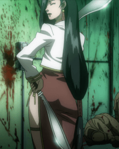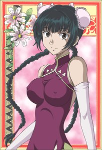 Shenhua, de la famosa serie de mercenarios Black Lagoon. Una asesina taiwanesa, que usa un qipao tradicional chino, y habla en inglés pidgin (o japonés dependiendo). En tal caso, no la subestimes por eso si valoras tu vida.