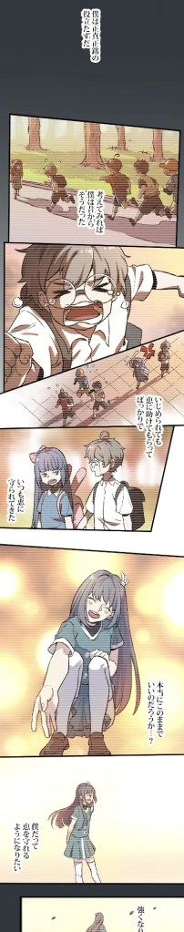 Haruma fue acorralado unilateralmente por Takeshi en el juego, pero en el momento en que quiso volverse más fuerte, una luz azul corrió y su arma estaba en su mano. Haruma persigue a Takeshi con un movimiento como el de una persona diferente al de antes.
