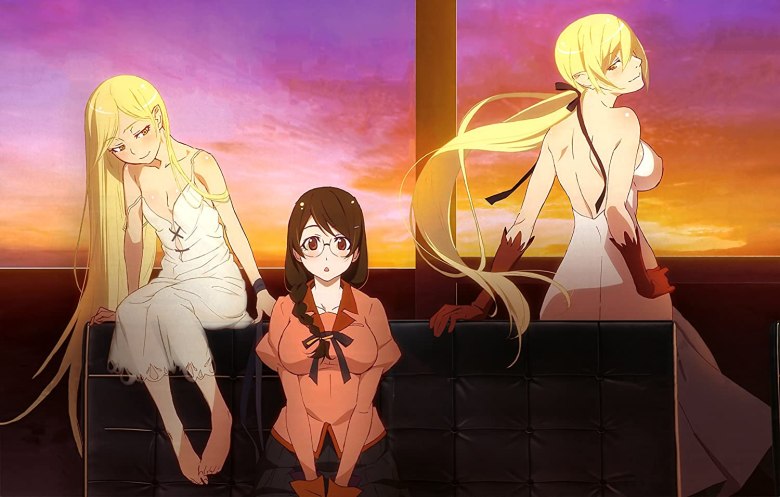 En Bakemonogatari y Nisemonogatari, Shinobu es vista con una forma más infantil, con un ligero y sencillo vestido babydoll suelto de color rosado, un par de sandalias y un gorro de piloto como accesorio (en Bakemonogatari).