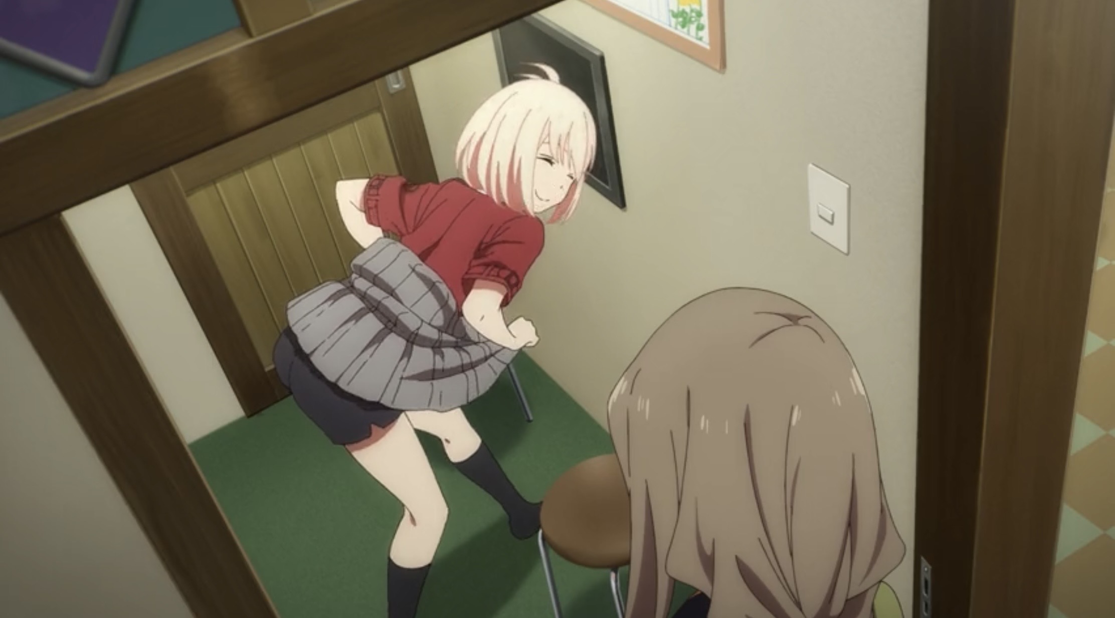 La característica posición de Chisato en el anime al pararse de manos que dejó ver sus muslos, cautivó tanto a los fanáticos que en los últimos meses se ha convertido en una fuente de inspiración para crear varios fanarts de otras protagonistas de anime realizando la misma pose que el personaje principal de Lycoris Recoil.