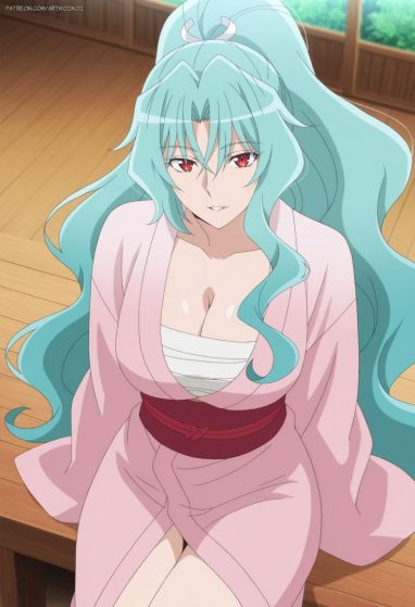 Asi mismo, también ella es lo bastante exótica, como se muestra en muchas escenas de fanservice de la serie, su voluptuosa figura para una estufiante de secundaria y una muy bella cabellera purpura.