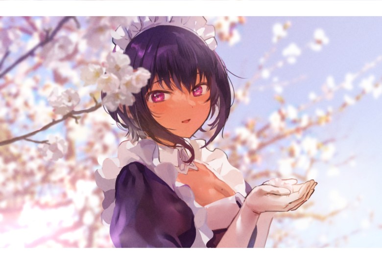 Llegando en el próximo conteo con la hermosa waifu sirvienta de piel canela, está morena con sus ojos violeta y su encanto misterioso transmite una vibra hechizante, en especial cuando de su joven amo se trata.