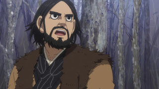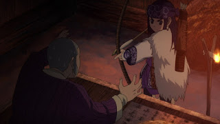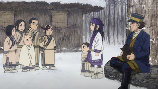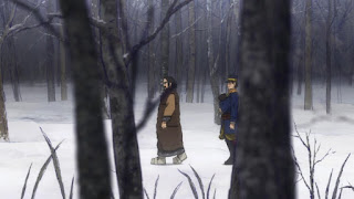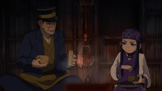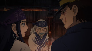 Continuando con la tribu Ainu. Sugimoto va con Asirpa al río para pescar, para luego ir a cumplir algunos quehaceres para ayudar, directo al bosque es sorprendido por uno de los Ainu quien le advierte muy directamente que se detenga, Sugimoto piensa que está siendo hostil, sin embargo se percata de que le salvó de pisar en falso en caer en una trampa de cuerda que dispara que dispara una flecha, por lo que de inmediato Sugimoto se disculpa y charla con él, el Ainu le hace saber de que realmente es el tío de Asirpa y de que piensa que Sugimoto realmente no debe ser como los demás, ya que Asirpa se lleva muy bien con él, debido a que ella es una niña muy solitaria como lista, tanto que es muy madura para su edad.