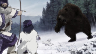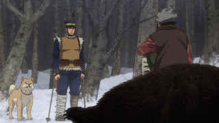 No obstante le disparan en el trasero dejando al ciervo herido, Asirpa y Sugimoto van tras él, de pronto la niña ve extrañas pisadas sospechando del peligro. Por otro lado el soldado que que fue herido por el lobo compañero de Asirpa durante el ataque a ella y Sugimoto anteriormente se encuentra cerca del bosque nevado en las montañas acompañado de un cazador de osos quien fue contratado por él para matar cazar a un gran osos pardo el cual utiliza a su perro para que alerte al oso, cuando esta bestia feroz sale de su cueva el cazador de un solo disparo lo mata, el soldado llamado Tanigaki Genjirou se impresiona al saber que lo que escuchaba de ese cazador no eran rumores falsos, conocido este cazador de osos como Tetsuzo Nihei, se cuenta el rumor de que cuando Nihei pasa por una montaña se queda sin osos.