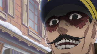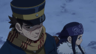 Sugimoto miente con mucha convicción de parecer que habla con verdad, prometiendo que si lo salvan dará la ubicación de la piel tatuada, Tsurumi sonríe y ordena a sus hombres llevar a Sugimoto al hospital. Mientras llevan a Sugimoto al hospital, Tsurumi inspecciona el cadáver de uno de sus hombres encontrando extraño el porqué había sujetado la bayoneta con una mano herida, cuando se percata de que su intestinos fueron tomados, en ese momento Tsurumi se percat de que fue engañado por Sugimoto, por otra parte Sugimoto huye mientras deja a todos los guardias lanzándolos del trineo en el que va, desde cierta distancia Tsurumi le persigue en caballo, apunto de dispararle a el, Sugimoto es salvado por Asirpa quien le dispara una flecha al caballo del teniente , Tsurumi de inmediato corre teniéndolo en la mira de su pistola cuando decide dejarlo así por el momento dejándolo escapar.