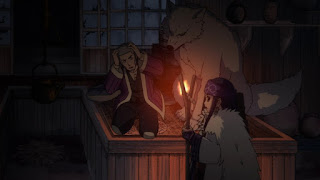 De vuelta a Asirpa y Sugimoto este se pregunta qué harán con el caballo, Shiraishi menciona que destacaría demasiado y Asirpa concuerda con él, por lo que terminan por matar al caballo, Shiraishi les cuenta que sabe beun o la carne de caballo si se prepara al estilo Sakura nave, un platillo popular en Tokyo, Shiraishi de inmediato va por los ingredientes, mientras que Sugimoto se encuentra muy incómodo a solas con Asirpa, esta empieza a cortar la carne del caballo lanzando una pieza a Sugimoto para su hinchazón en la mejilla, de pronto el lobo Rate se asoma detrás de él queriendo comerse la carne de caballo que está en el rostro de Sugimoto. Más adelante llega con lo necesario para el platillo, después de prepararse todo, los 3 almuerzan y Shiraishi menciona lo delicioso que le queda el miso a ello, Sugimoto se asusta al escucharlo.