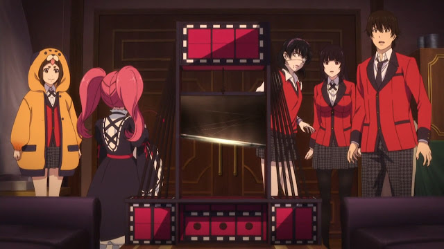 Con una serie de eventos en apuesta sa través de un alto porcentaje de riesgo. La principal jugadora del evento mortal, Jabami Yumeko. Apostará en un duelo junto a Ikishima Midari y Erimi Mushibami en un desafío en el que cada una tendrá un turno para cortar un laso de una guillotina mientras cada una inserta un dedo en un agujero debajo de dicha hoja mortal. En pocas palabras, quien pierda, fácilmente se despide de un dedo.