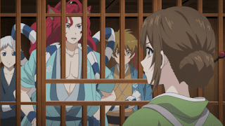 La nave de Orio-Ya llega a dicha posada cuando Aoi es tratada con bastante hostilidad al momento de ella bajar del navío, Ginji trata de defenderla pero Aoi es encerrada en una recámara de confinamiento por Ranmaru, Aoi preocupada por Ginji no puede evitar estar inquieta cuando uno de los trabajadores de Orio-Ya le trae el almuerzo a Aoi, el cual estuvo bastante bueno para ella, de pronto Chibi aparece el cual se encontraba oculto entre el yukata de Aoi, luego de un baño y una noche durmiendo en la celda, Aoi intenta escapar cuando Chibi le trae la llave la cual consiguió gracias a Nobunaga a cambio de una galleta. Aoi llega hasta un pasillo con vista al mar lo cual se puede apreciar un hermoso paisaje.