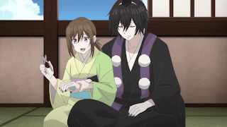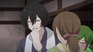 Aoi le ofrece a Yodoko la receta del monjayaki lo cual Yodoko agradece aún así pareciendole extraño que una cocinera revele su secreto de tal almuerzo. Hideyoshi aparece enfurecido y regaña a Mai y Kei al igual que Aoi por esta última ayuda en la cocina de la posada Orio-Ya aun perteneciendo a la posada rival, además de ya ser en sí humana lo cual provoca curiosidad en ellos, Tokihiko trata de solucionar el problema pero es imposible en alguien tan terco como Hideyoshi, de pronto Ranmaru llega ordenandole a Kai y Mei seguirle.