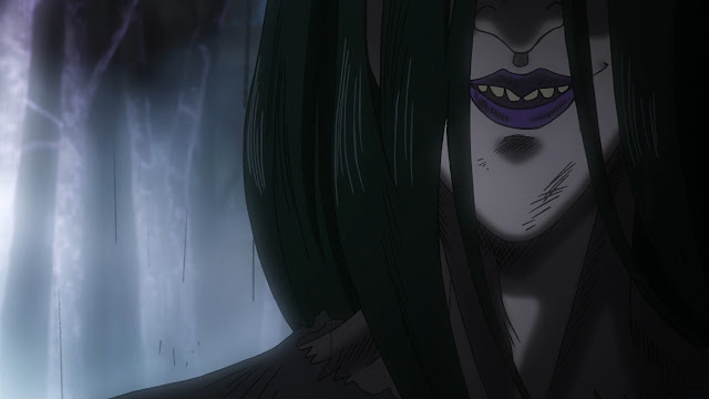 La arrastradora surge de la ciénaga como una gran abominación. No obstante, los intentos de ataque de ella son inútiles contra los poderes de Mob. Debido a que le chico se mantuvo alejado de toda superstición. Lo cual creo al espectro. Finalmente es vencida por Mob con sus poderes psíquicos. Luego, Reigen y Mob van por otra leyenda urbana conocida como la vieja carretera. Mob ejerce su poder contra ella, pero no funciona. Por lo que, Reigen y el chico comienzan a corre. Sin embargo, la anciana los rebasa.