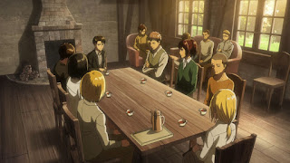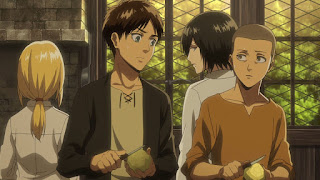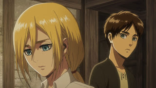 Sin embargo él no piensa hacerlo al ya haber dormido un dia y Connie esta preocupado en querer vengarse contra el Titan Bestia mientras el chico tiembla de miedo, Eren lo observa cuando Historia les hace saber a Eren y los demás que la menos tiene un objetivo por lo que están determinados peor ella no y con la partida anteriormente de Ymir, Historia esta desorientada y que hasta el monto ha sido la persona más prenda para ella, Eren le hace saber de que ella esta mejor que antes, pies en mucha ocasiones sonreía forzosamente y ahora es mas seria lo cual lo hace ver mas natural, luego Eren recibe notificaciones de que Hange llego, la cual les explica al escuadrón 104 y Levy sobre el asesinato del pastor Nick.