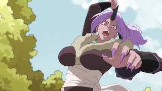 fuego negro. Rirumu ejerce su técnica a través de una gran roca como demostración de su fuerza. Con el brazo regenerado y el inminente poder superior de Rirumu. El ogro líder no piensa dar marcha atrás a pesar de saber que morirá en el intento. No obstante, su hermana interviene y logra convencer a su hermano de que el adversario no puede ser su enemigo. Ya que ha demostrado su gran poder, con el que podría eliminar a cualquiera sin tener que mandar a otros hacer el trabajo por el, de aniquilar. Caso que antes se dio en el pueblo de los ogros.